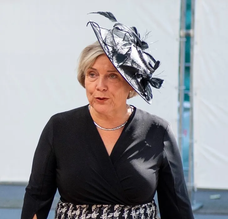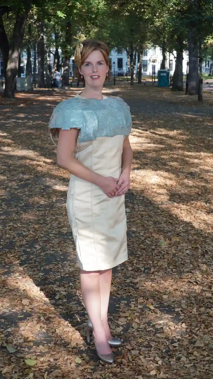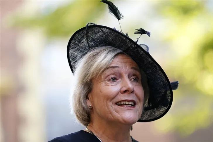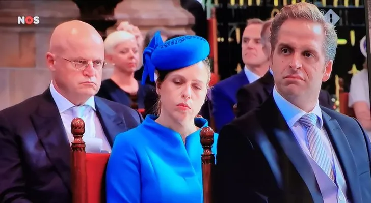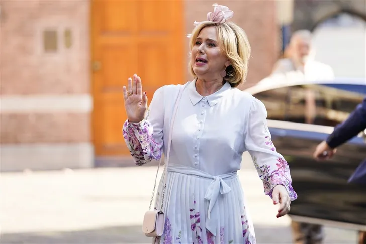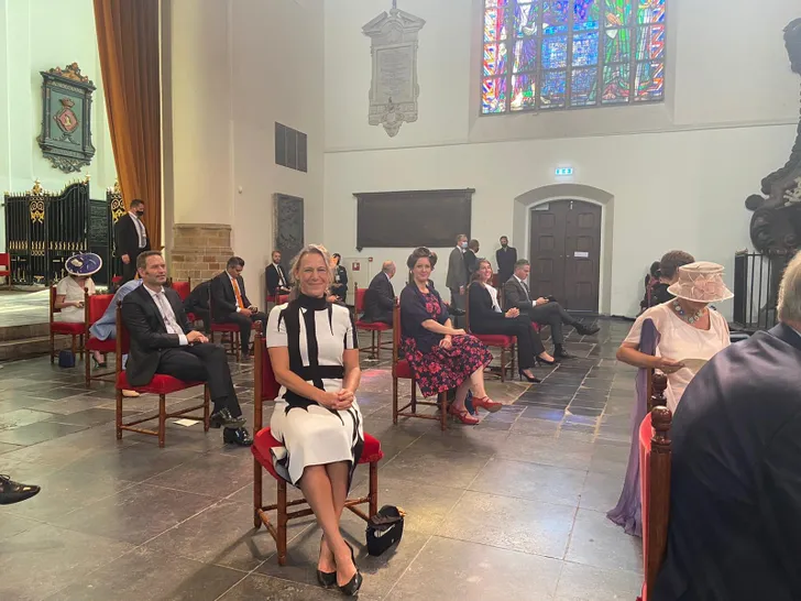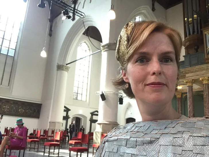 Minister van Landbouw Carola Scholten had zich laten inspireren door een klassieke stewardessen-look (en je ziet dat het geen dolle boel was in de kerk).