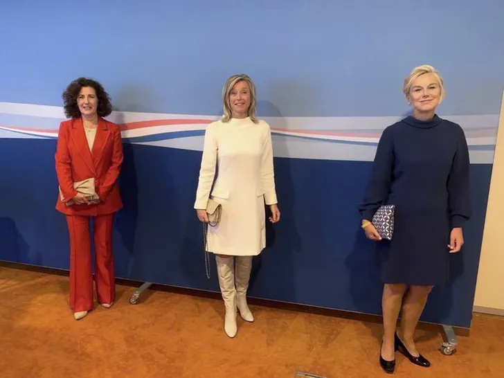 De dames van D66 rukten uit in de driekleur. V.l.n.r Ingrid van Engelshoven (Minster van Onderwijs, Cultuur en Wetenschap), Kasja Ollongren (minister van Binnenlandse Zaken en Koninkrijksrelaties en eigenaar van buitengewoon coole laarzen en dat bij 30+ graden #respect) en Sigrid Kaag (minster van Buitenlandse Handel en Ontwikkelingssamenwerking).