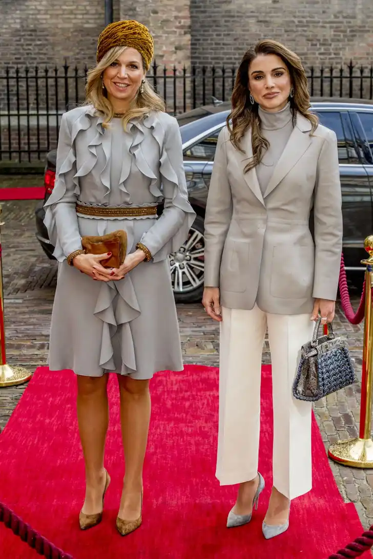 Dus, je bent koningin Rania van Jordanië en je hebt al niet zo'n zin in een staatsbezoek aan Nederland. En dan kom je met je casual chic workwear naast een collega te staan die nog nooit een volant, ruche of tulband heeft gezien die haar niet beviel. Deze Fashion Battle was binnen een halve seconde beslist.