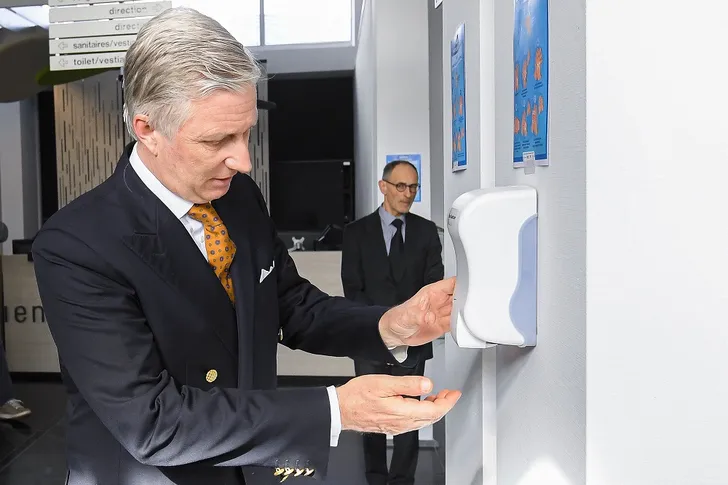 …aarzelde ook koning Filip van België geen minuut toen hij de handgel spotte…