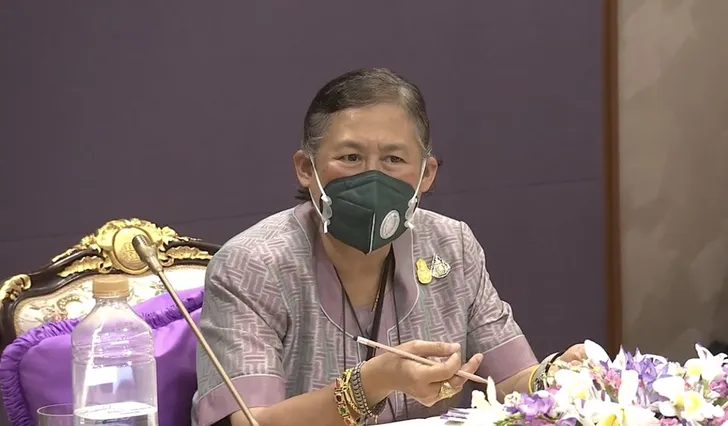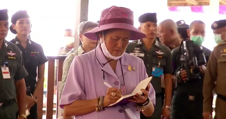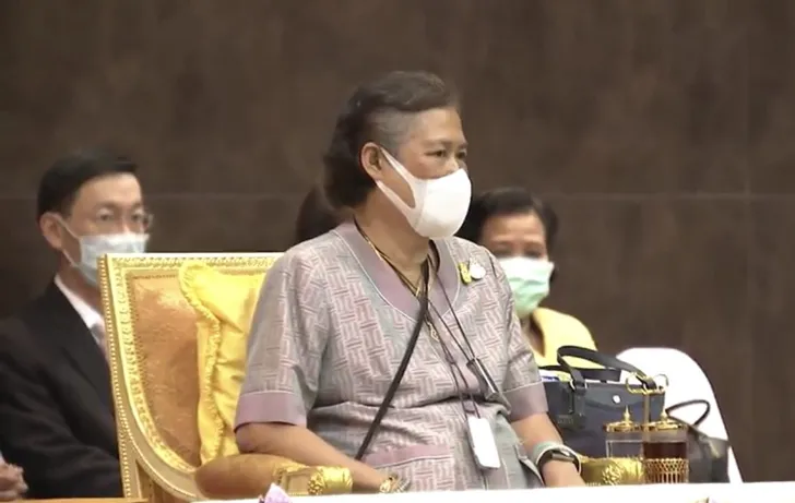 Prinses Sirindhorn van Thailand droeg gewoon een mondkapje bij een werkbezoek (al hield ze het niet de hele tijd op)...