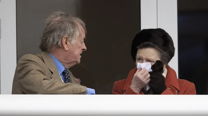 Prinses Anne gebruikt normaal gesproken degelijke katoenen zakdoeken, maar bleek op Cheltenham toch wijselijk de wegwerptissues te hebben omarmd.