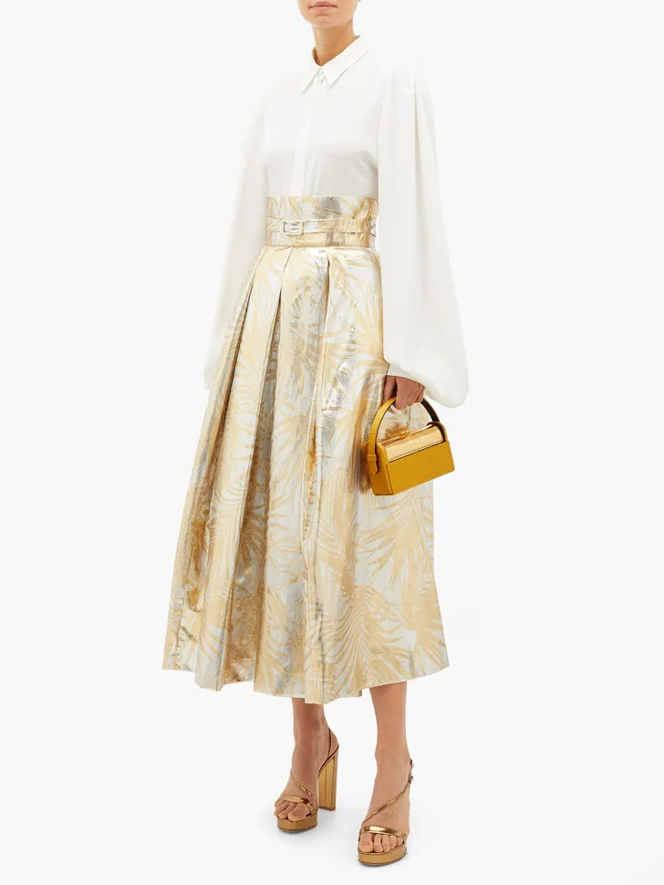 Goudkleurige rok met palmmotieven van Sara Battaglia (Matches Fashion € 788)