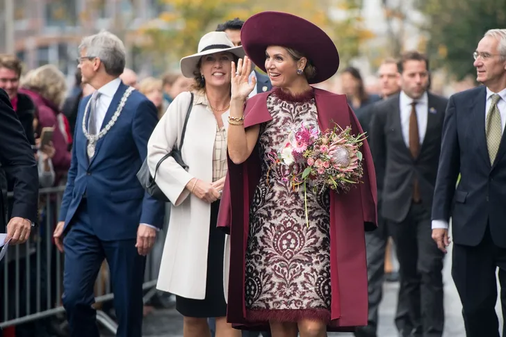 Máxima droeg naar een van de nieuwjaarsontvangsten afgelopen week een mooie Natan van brokaat. Dat is een zijdeweefsel met ingeweven, meestal grote figuren, vaak met goud- en zilverdraad doorweven.