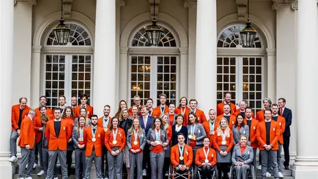 Vice premier Hugo de Jonge sprak de sporters, in afwezigheid van Premier Rutte, toe in de Grote Kerk. En hij nam de gelegenheid om met Paralympisch sportheld Jeroen Kampschreur op de foto te gaan.