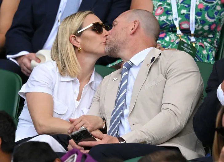 Prinses Anne's dochter Zara en haar man Mike Tindall, zoenend in de Royal Box van Wimbledon.