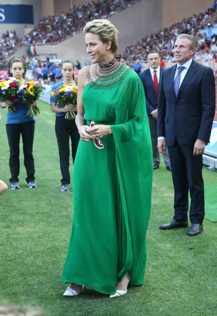 Prinses Charlene weet zich met haar modekeuzes steevast in de spotlight te spelen, maar met geen andere kleur heeft ze in haar royal-geschiedenis zoveel succes gehad als met groen.