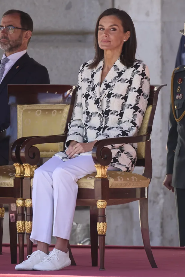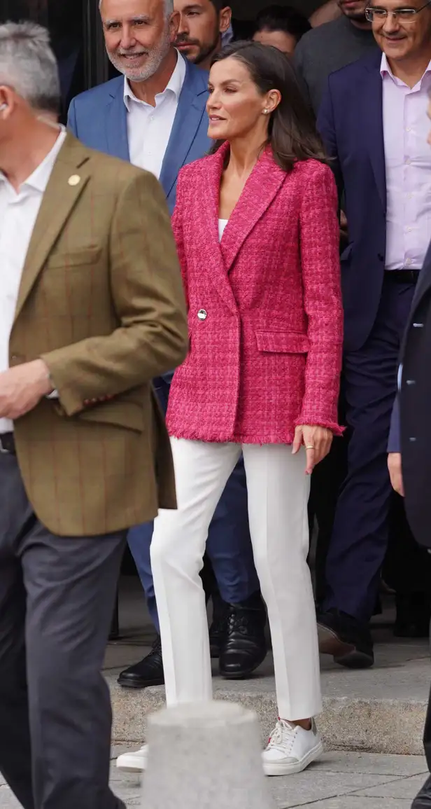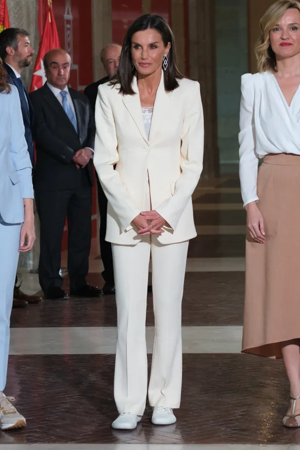 Woensdag was Letizia aanwezig bij een herdenkingsevenement ter gelegenheid van het tweehonderdjarig bestaan van de Nationale Politie in Spanje. Hiervoor koos ze opnieuw voor een witte pantalon met blazer. De schoenen waren dezelfde sneakers als die ze de dag ervoor droeg.