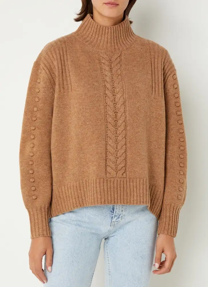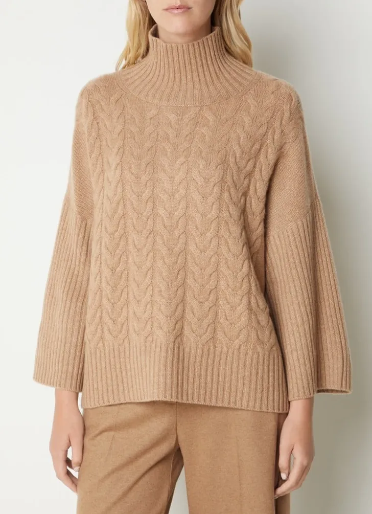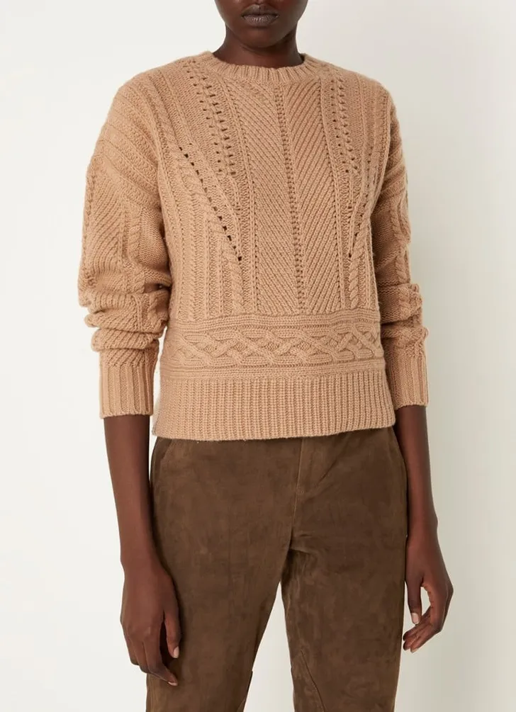 De prinses droeg een fijne kabeltrui met raglanmouwen van Emilia Wickstead. Het origineel kost 560 euro, hierbij wat alternatieven in de categorie cosy & chic.