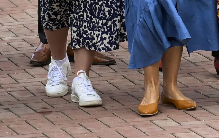 Het vroeg om zomerse maar respectvolle outfits, dus kwamen er voor het eerst in een paar dagen bij zowel Máxima als Amalia weer jurken uit de koffer. En hoedjes zelfs, voor Amalia een primeur (zij het een heel zomerse).