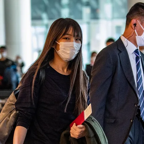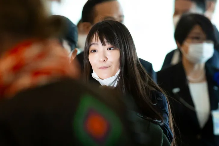 Gewapend met haar kersverse paspoort en omringd door beveiligers arriveerde Mako Komuro, voorheen Hare Keizerlijke Hoogheid prinses Mako van Japan...