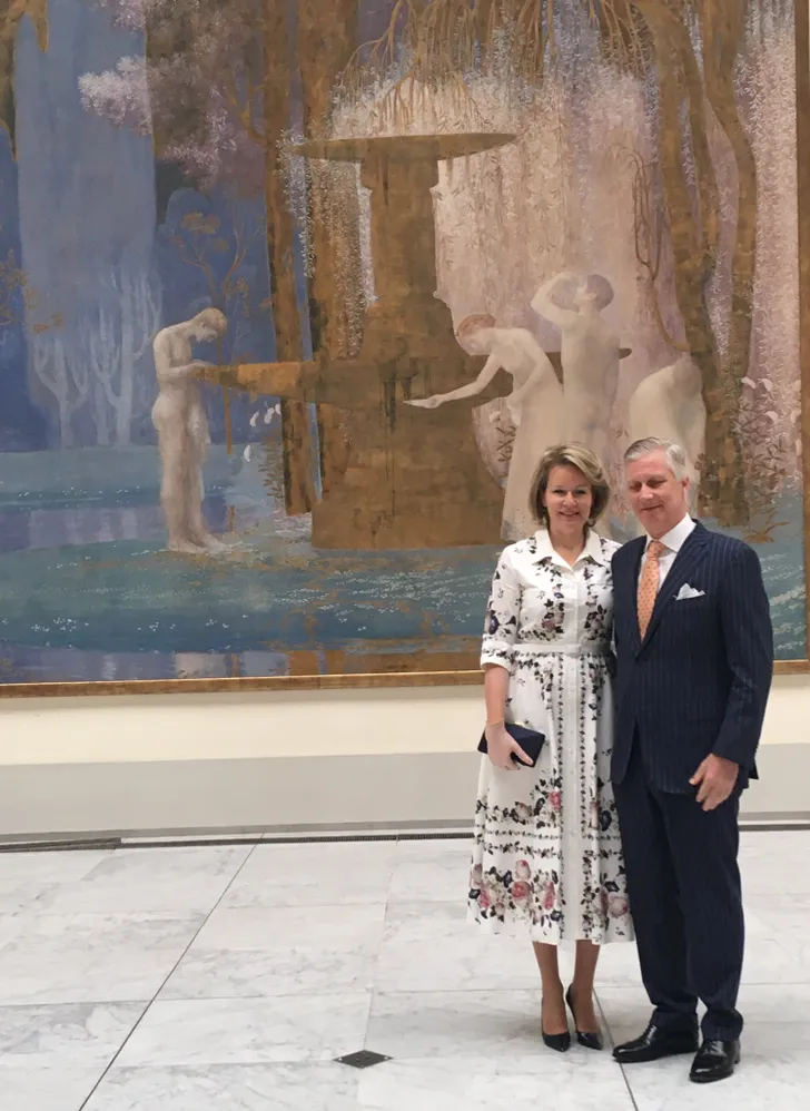 Koningin Mathilde van België droeg een vrolijke Erdem bij de heropening van het Oude Meesters Museum, iets waarbij ZM de ogen amper kon openhouden.