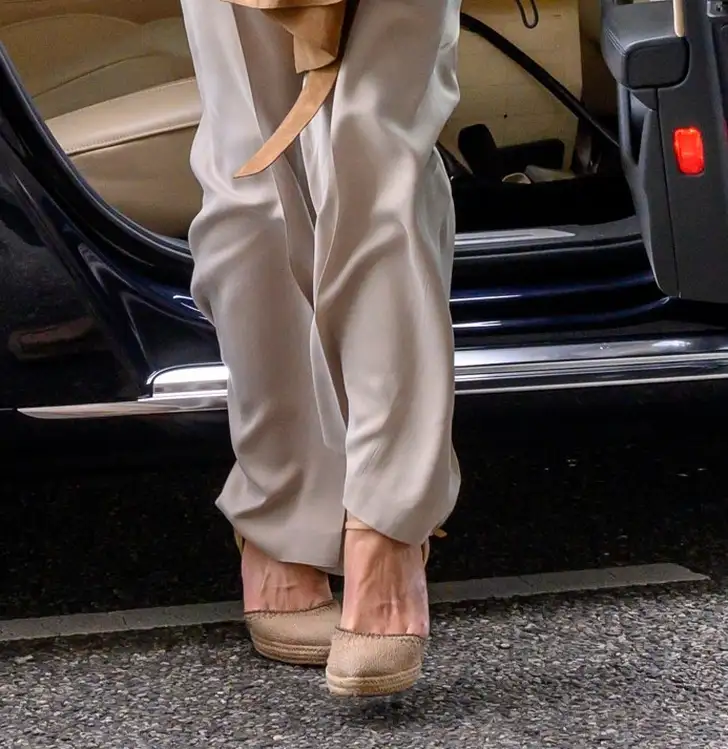 ...en het zou zomaar kunnen dat ze in de auto een paar iets comfortabelere schoenen heeft, die ze voor haar aankomst even omwisselt. She's one of us!