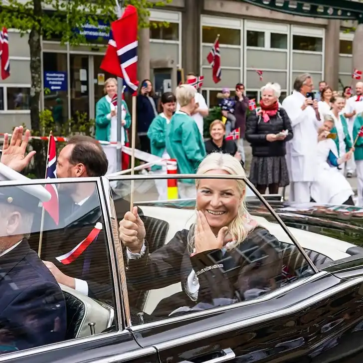 Normaal gesproken komen de Noren naar het paleis op de Nationale Dag, ditmaal besloot de koninklijke familie het maar eens om te keren en maakte een rondrit, om zo drommen mensen te voorkomen.