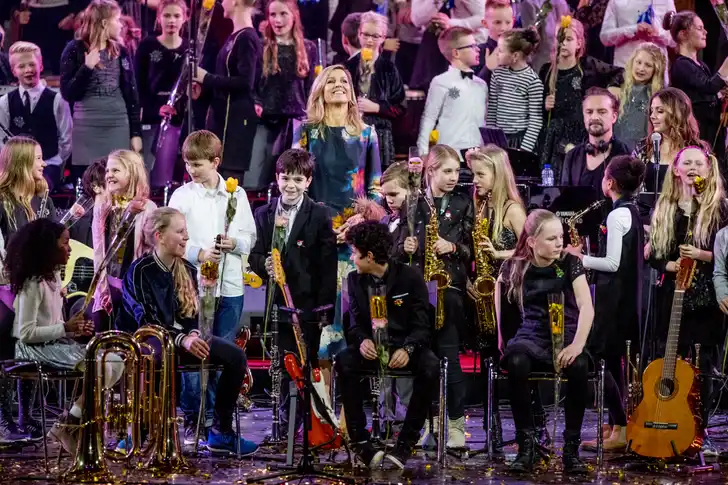 Als erevoorzitter van het platform Meer Muziek in de Klas was Máxima aanwezig bij het Kerst Muziekgala.