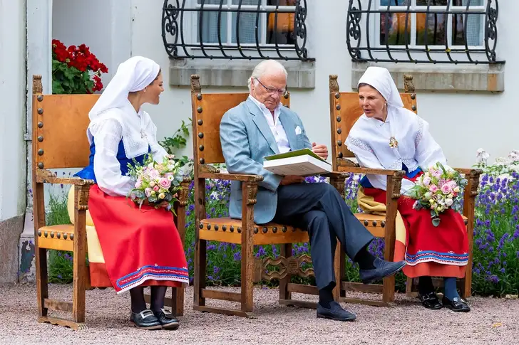 Eerder reikten de Zwoyals er al de Öland Bewonersprijs uit, voor mensen die speciale dingen voor het eiland hebben gedaan. Silvia en Victoria droegen daarbij oogverblindende plaatselijke klederdracht, Zijne Majesteit regeerde casual met een paar knoopjes open.