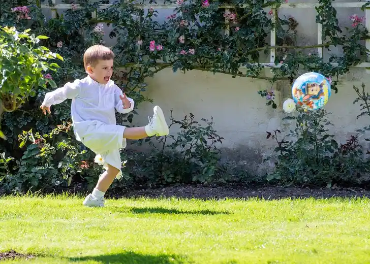 De kinderen stalen ook dit jaar de show. Oscar moest er even inkomen, maar sprong al snel als kleine kikvors door het gras...
