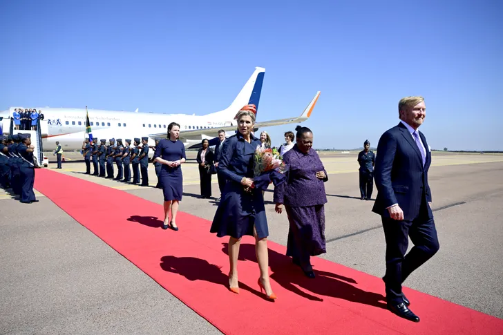 Het staatsbezoek aan Zuid-Afrika is officieel begonnen. Vanochtend (het is daar dezelfde tijdszone als in Nederland) arriveerde het koninklijk paar op militair vliegveld Waterkloof in Pretoria.