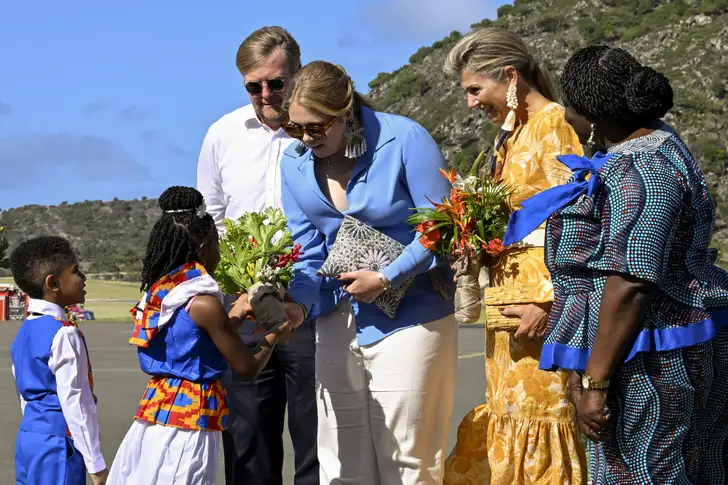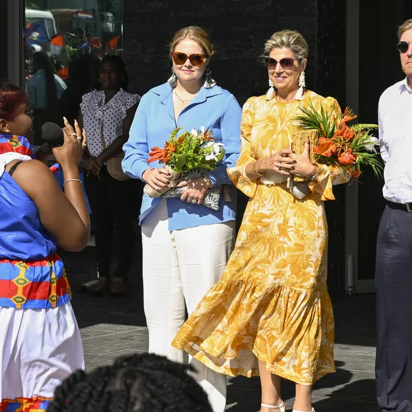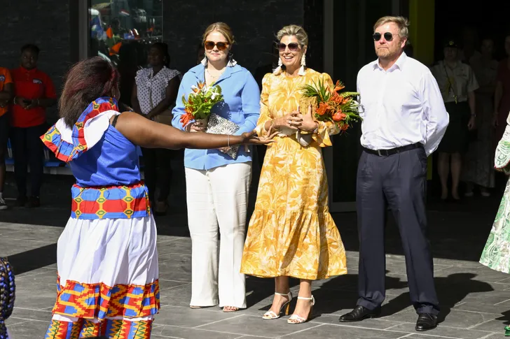 Máxima koos voor de dag haar zomerse Zimmermann die we kennen van een eerdere zomerfotosessie. Dat is een Australisch merk, gericht op lekker luchtige, zweetproof mode. Amalia ging voor een blouse zo blauw als de Caribische lucht vandaag en de koning liet zijn blazer zo te zien maar direct in het hotel hangen.