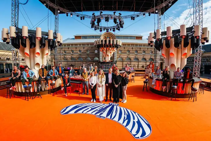 The Streamers, bestaande uit onder anderen Guus Meeuwis, Davina Michelle, Kraantje Pappie, Miss Montreal en Typhoon, hebben daarmee een primeur te pakken. Nooit eerder vond er zo’n groot popconcert plaats bij het werkpaleis van koning Willem-Alexander. De groep speelde vanaf het plein bij de Koninklijke Stallen voor de jarige koning (54). Dit zijn beelden van de repetitie, de stream vind je bij, euh, The Streamers.