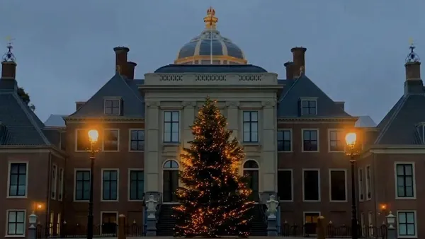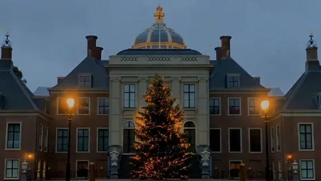 De boom die voor het woonpaleis van Willem-Alexander, Máxima en de drie prinsessen staat is versierd met meer dan vierhonderd (led)lampjes. Ballen hangen er echter niet in, maar dat maakt niet uit: zeker in het donker is het een prachtig gezicht.