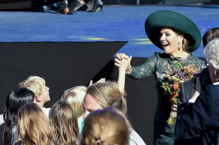 Schattig! Dit verlegen bloemenmeisje geeft een high five aan koningin Máxima. #BlauwBloed pic.twitter.com/sRN0REaaSR