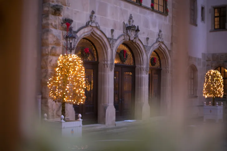 ...in Chateau Berg. Maar groothertog Henri, groothertogin Maria Teresa, de kinderen, kleinkinderen en Yorkies zijn nog nergens te bekennen.