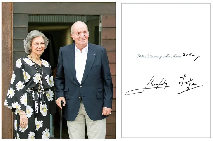 Ook bij oud-koningin Sofia en oud-koning Juan Carlos van Spanje ontbreken de kerststerren en de mistletoe. Wel verdienen ze bonuspunten, want er lijkt ditmaal niks gefotoshopt* en bovendien staan ze er zelf op, in plaats van de buitengewoon stichtelijke prent die ze normaal gesproken verstuurden.