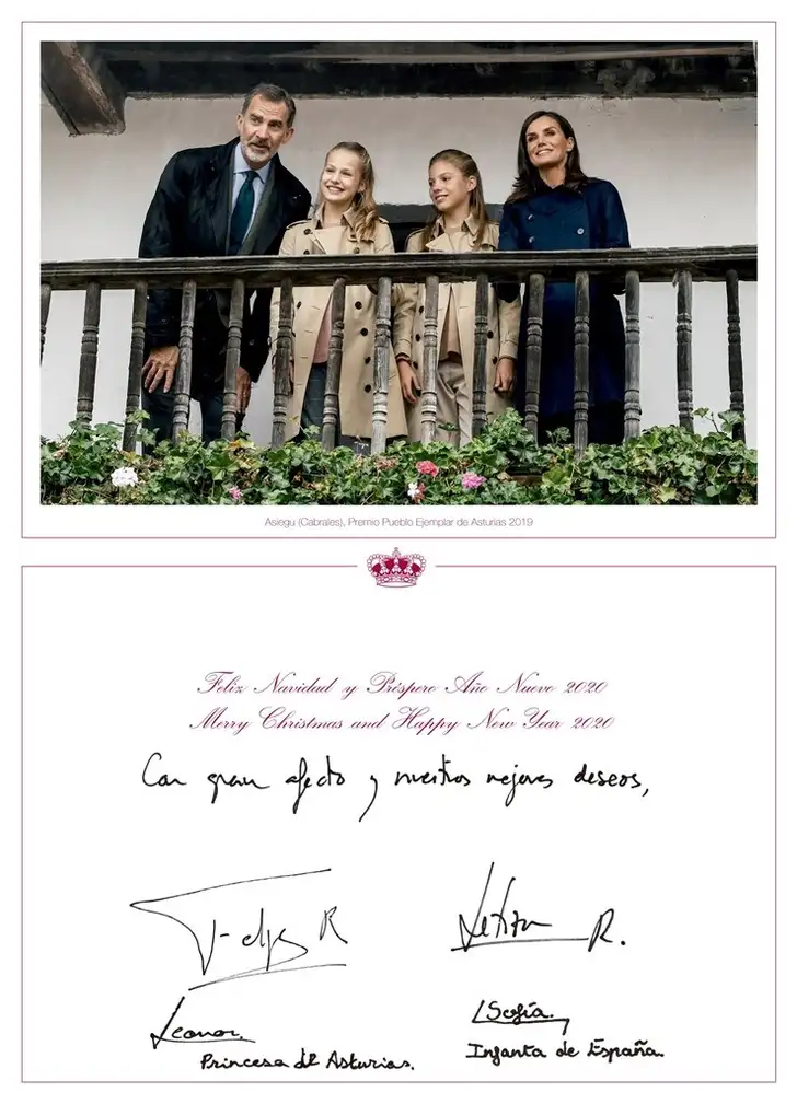 …en hebben ook de Spaanse Royals dit jaar totaal geen moeite gedaan om een beetje Feliz Navidad te verspreiden. Koning Felipe en koningin Letizia kozen gewoon een kiekje van een werkbezoek aan Asturias met hun dochters.