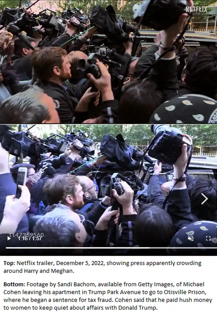 The clip in the Harry & Meghan trailer released today showing Paparazzi swarming the car was not of Harry & Meghan.