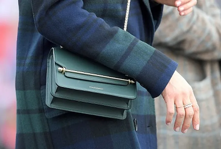 Weet je nog, dat tasje van Strathberry in donkergroen? Ze droeg het – lekker niet royal! – crossbody in Schotland en het matchte perfect bij haar Burberry-jas. De East-West Mini, zoals het tasje heet, was ondanks de prijs van 425 pond niet aan te slepen.