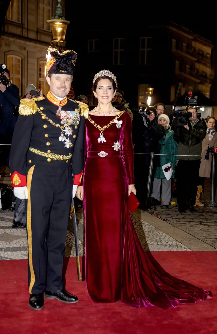 Kroonprinses Mary droeg de Ruby Parure uit 1804, waarvan de tiara hoger en lager kan worden opgebouwd. Kroonprins Frederik en zij zullen vast een beetje in spanning zitten, want hun kinderen prins Christian, prinses Isabella, prins Vincent en prinses Josephine beginnen maandag aan een drie maanden durend verblijf op de Lemania-Verbier International School in Zwitserland.