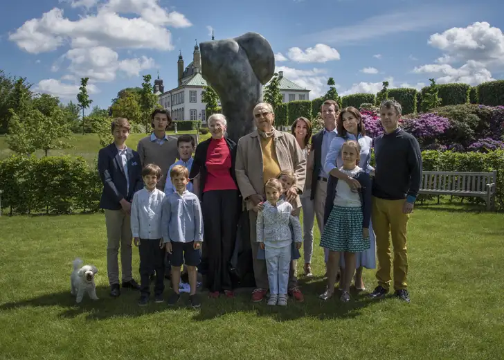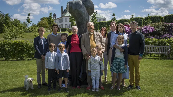 Het Deense koningspaar is zaterdag precies vijftig jaar getrouwd, en viert dat met een unieke familiefoto.