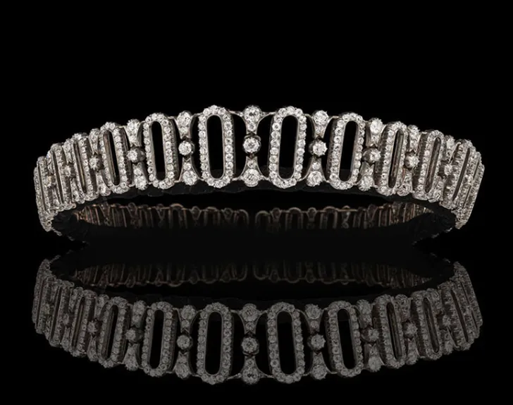 De Edwardiaanse (1901-1910) tiara heeft bovendien nog een paar verborgen kanten. Het sieraad is aan het frame bevestigd met minuscule schroefjes, die ervoor zorgen dat de drie centrale delen van het erfstuk kunnen veranderen in een choker-ketting. De twee overige delen aan de zijkant kunnen samen een armband vormen. Volgens Guy Burton van juwelier Hancocks is het "een prachtig voorbeeld van voortreffelijk vakmanschap met een unieke herkomst."