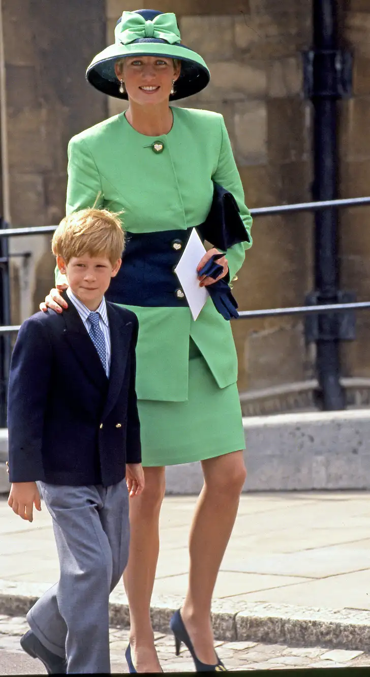 In royal dress bij het huwelijk van Lady Helen Windsor, 1992 (op de plek waar Harry ooit zelf zou trouwen)