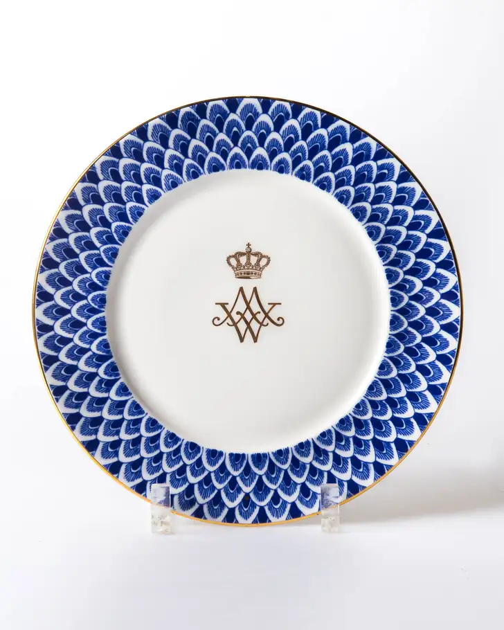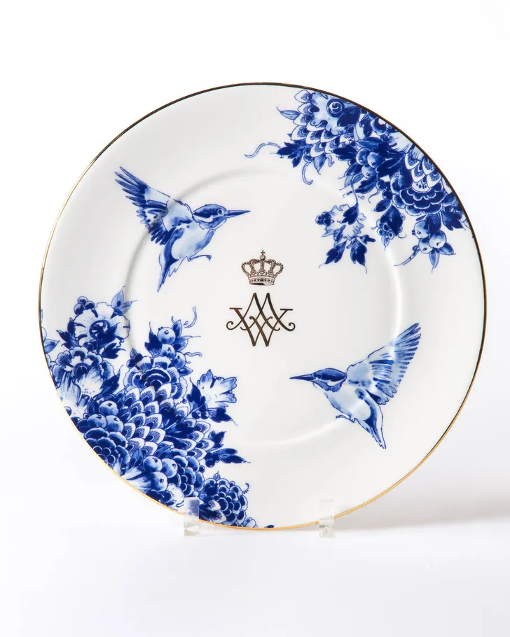 Op de borden staat het monogram van de Koning met de Koninklijke kroon. Het monogram en de randen van de borden zijn aangebracht in goud. Dit geldt ook voor het keurmerk aan de achterzijde, dat normaal gesproken in blauw wordt weergegeven.