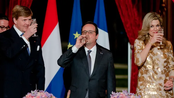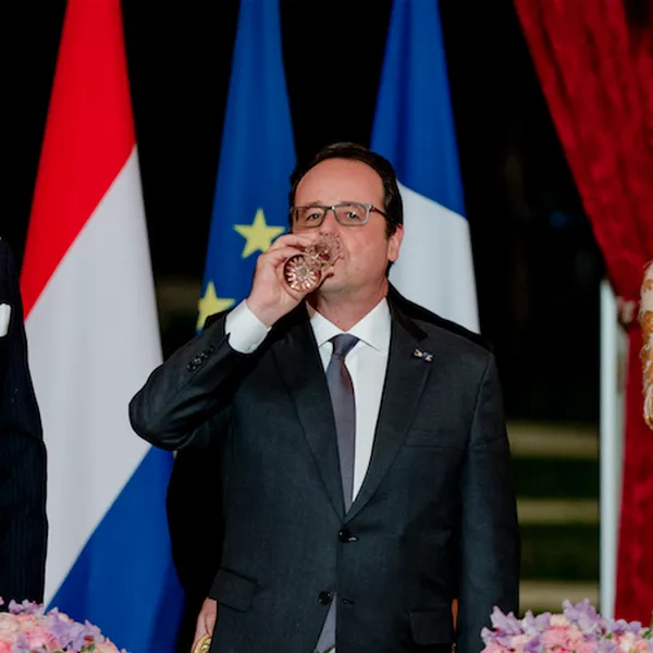 Stond Willem-Alexander vroeger bekend als 'Prins Pils', inmiddels weet de koning een goede wijn zeker te waarderen. En koningin Máxima proost gezellig mee.
