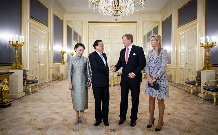 Het was druk op Noordeinde deze week: maandagavond verwelkomden Willem-Alexander en Máxima ook al de Chinese premier Li Keqiang en zijn vrouw. Die ontmoeting stond in het teken van de goede betrekkingen tussen China en Nederland. De Oranjes gaan zelf ook geregeld naar China voor een bezoekje. Voor die gelegenheid koos de koningin voor een Natan.