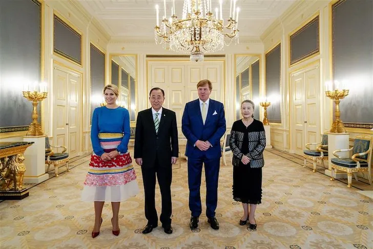 Ons koningspaar ontving vanavond (dinsdag) de voormalig secretaris-generaal van de VN Ban Ki-moon en zijn echtgenote op Paleis Noordeinde. Daarbij droeg Máxima opvallend genoeg (en lekker down to earth) dezelfde outfit van Claes Iversen die ze vandaag droeg in Zeeland.
