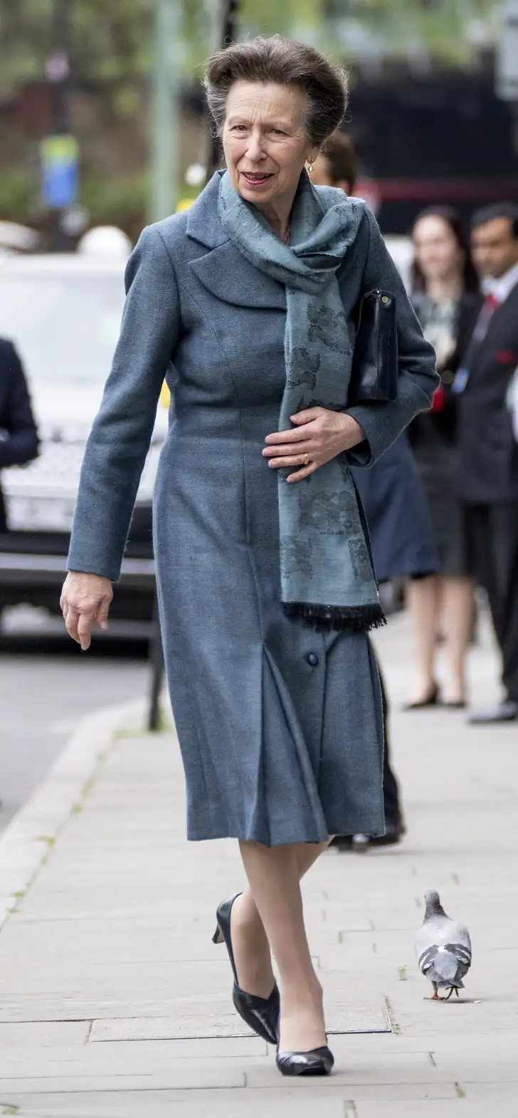 Anne droeg een grijsgroene jas en een bijpassende sjaal, ook niet het meest sprankelende plaatje voor een lentedag – voortaan even vooraf appen voor misschien iets meer kleur en fleur, dames.