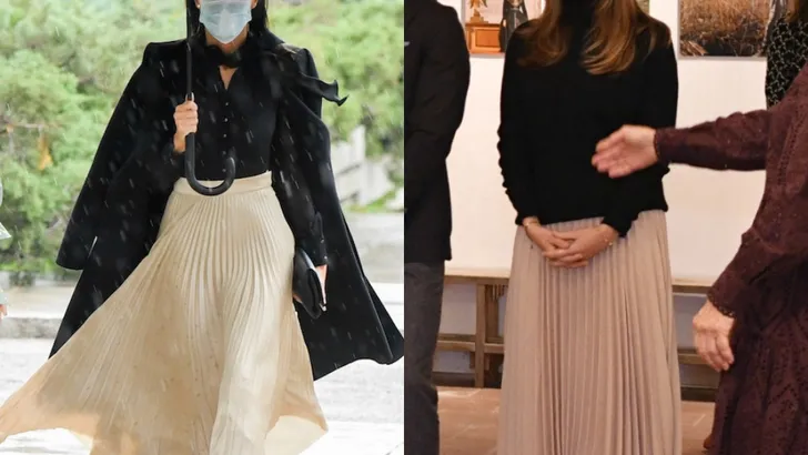 We moesten twee keer kijken toen koningin Letizia van Spanje en prinses Sofia van Zweden deze week allebei in het leek wel dezelfde rok ten tonele verschenen. Er bleken kleine verschillen, maar stijlvol was het zeker, zo'n midi-plooirok in een lichte kleur als najaarsoutfit.