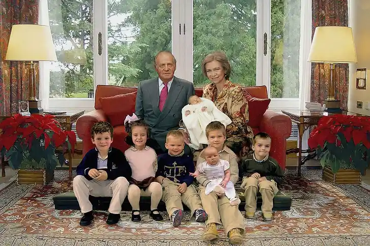 De kerstkiek waar we nog altijd om kunnen lachen: in 2005 lagen de diverse leden van de Spaanse royal familie zo met elkaar overhoop dat bij elkaar komen voor een kerstgroet er niet in zat. Dat er wat nazaten ingeshopt zijn, vooruit. Maar dat een heel been van Juan Carlos is verdwenen is toch wel een beetje slordig, al leiden de enorme kerststerren er leuk vanaf.