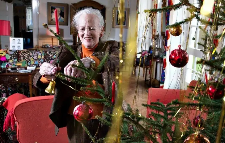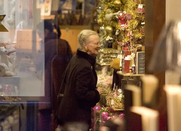 Ook in 2005: koningin Margrethe van Denemarken die in Londen aan het kerstshoppen was. Niet haar eigen boom, toch leuk!