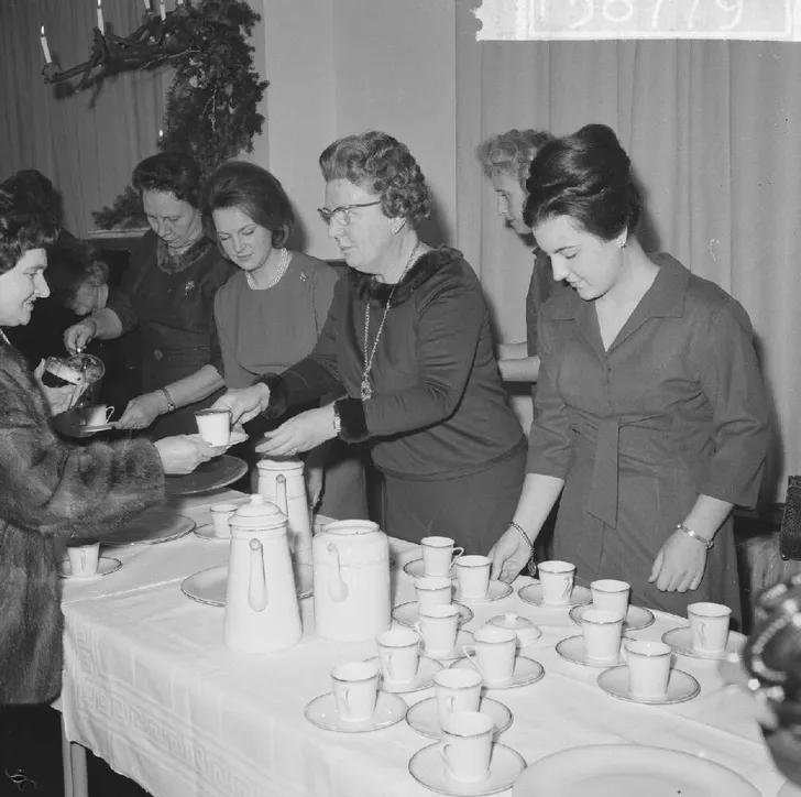 Paleis Soestdijk, 1963: het koninklijk gezin viert kerst met het personeel.
