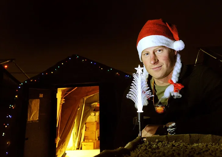 Afghanistan, 2012 – een kerstgroet van prins Harry uit de tijd dat hij zichzelf nog niet zo serieus nam: love de vlechten!