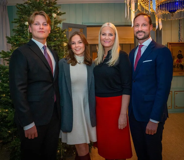 Skaugum, 2004: de Noorse broer en zus Märtha Louise en Haakon met hun oudste dochters Maud en Ingrid Alexandra (rechts).