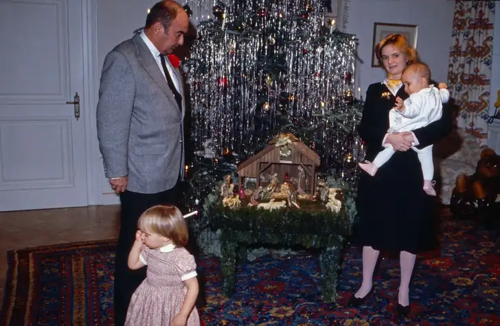 Kasteel Emmeram in Neurenberg, 1982: prins Johannes von Thurn und Taxis met zijn vrouw Gloria en dochters Maria Theresia Elisabeth, en héél veel lametta in de boom.