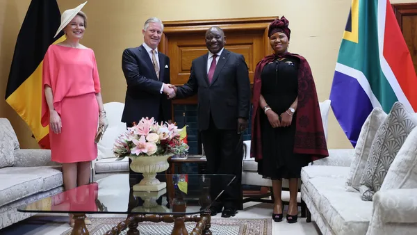 Koning Filip en koningin Mathilde van België zijn op staatsbezoek in Zuid-Afrika op uitnodiging van president Cyril Ramaphosa (70). Dat is een van de rijkste Afrikanen en een buitengewoon controversieel figuur. Er wordt alom geprotesteerd en burgers eisen burgers zijn ontslag wegens wanbeleid en corruptie. Zie daar als invliegend koninklijk paar maar eens een gezellig sausje over te gieten.