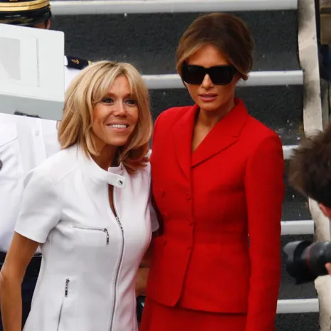 De hand van haar man weigert ze vast te houden, maar met Brigitte Macron durfde Melania Trump het wel. De twee first ladies trokken als een soort nieuwe beste vriendinnen door Parijs.