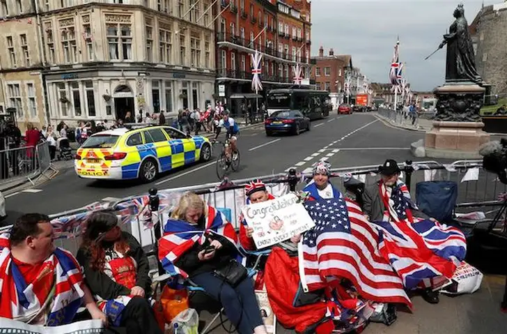 Het plaatsje Windsor staat al de hele week in de startblokken voor de royal wedding van zaterdag. De eerste fans gingen maandag zelfs al klaarzitten.
